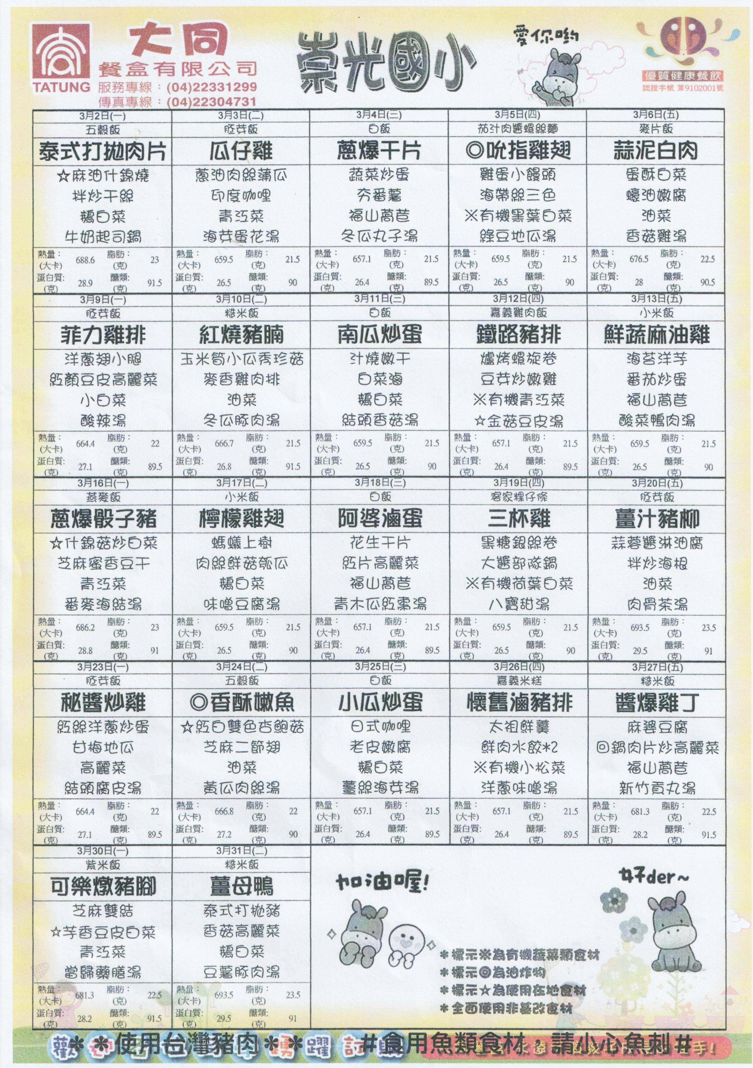 崇光國小附設幼兒園115年03月份--午餐菜單