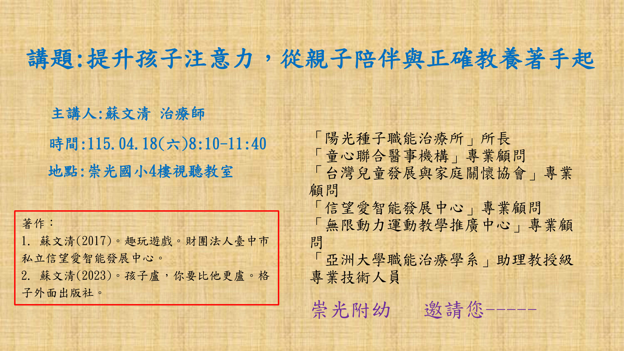 臺中市大里區崇光國民小學附設幼兒園【115 學年度招生】